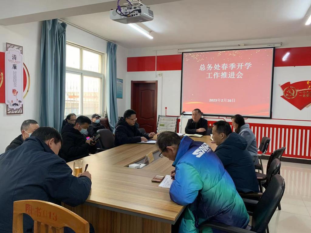 2023年2月16日下午3:00,总务处全体教职工在总务处二楼会议室召开春季开学工作推进会。会上,王处长首先介绍本次会议的重要性及其重要意义。其次王处长要求总务处各中心负责人分别把各自中心本学期工作打算及安排情况。